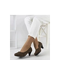 Elegantní hnědé lodičky Santro se záhybem jsou ideální volbou pro obchodní stylizaci. Vyrobené z vysoce kvalitní ekokože mají zaoblený špičatý nos, který zjemňuje nohu. S nízkým podpatkem poskytují pohodlí a stabilitu během nošení. Zajímavý detail ve formě záhybu na přední části svršku jim dodává originalitu. Standardní číslování, takže je dobré se při nákupu řídit svým velikostí. Skvělé lodičky na sloupku, které se osvědčí jak v kanceláři, tak při setkáních nebo slavnostech. Doplňkem je černá podrážka z umělé hmoty, která dodává eleganci každému outfitu. Ideální na nadcházející léto!