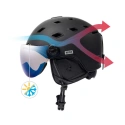 - Aktivní ventilační systém zajišťuje příjemnou teplotu uvnitř přilby pomocí 18 větracích otvorů, z nichž několik je nastavitelných, což umožňuje nastavit úroveň ventilace. Systém Air Flow odvádí pot větracími otvory skořepiny, aniž by ovlivňoval stabilitu a pohodlí přilby, čímž zabraňuje hromadění tepla a zajišťuje dobré proudění vzduchu. Přilba je také vybavena příjemnou, odnímatelnou vložkou, která odvádí vlhkost a snadno se čistí.