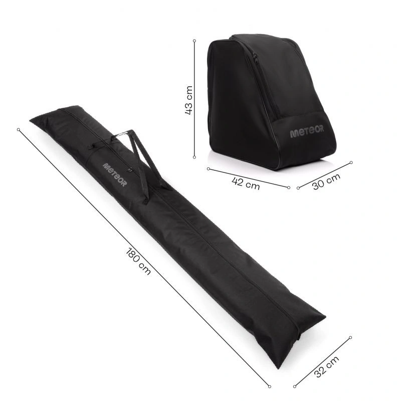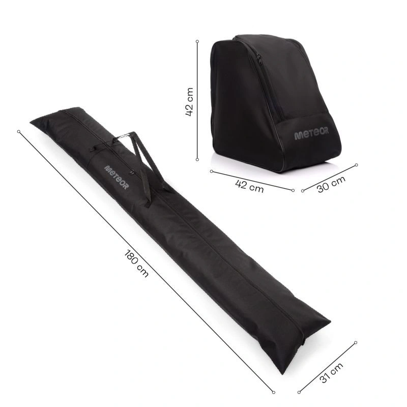 • Sada je vyrobena z nepromokavých a nepropustných materiálů, které zajišťují odolnost vůči nečistotám a vlhkosti. Polyesterová tkanina 600D potažená PVC snižuje riziko oděru materiálu a zaručuje dlouhou životnost i při intenzivních outdoorových aktivitách. Po skončení zimní sezóny se sada bude hodit i pro uložení dalšího sportovního vybavení, například kolečkových bruslí nebo kolečkových bruslí.