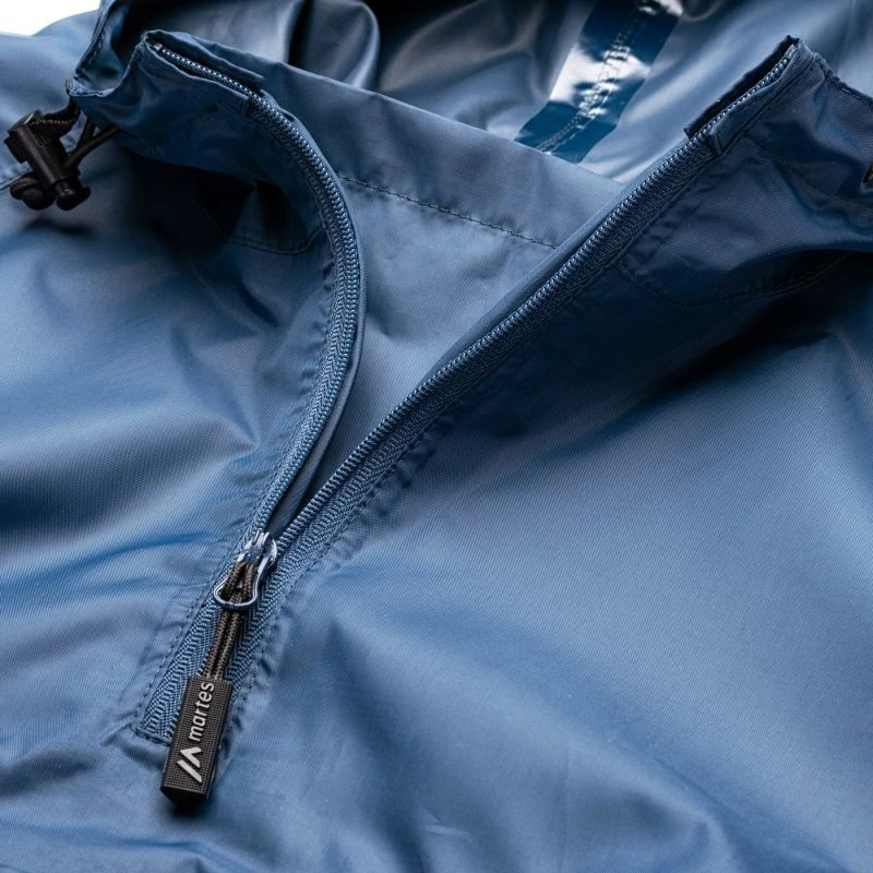 Bunda KAGOO JR značky Martes Essentials má krátký zip, který usnadňuje oblékání a svlékání bundy. Podlepené švy chrání švy před promočením, což zvyšuje nepromokavost bundy. Stahovací šňůrka v pase dává možnost dobrého přizpůsobení. Představený model má navíc přední kapsu a kapuci. Díky nízké hmotnosti a sbalitelnosti se snadno sbalí do batohu.
