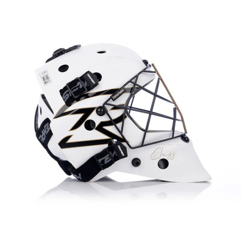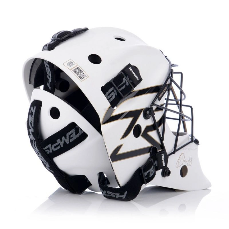 maska bramkarska unihokej TEMPISH Class To nowoczesna i profesjonalna maska bramkarska do unihokeja, będąca następcą popularnego modelu HERO ACTIV. Jej dynamiczny design został zaprojektowany z myślą o aktywnym poruszaniu się w polu bramkowym, zapewniając pełną swobodę ruchów i doskonałą ochronę. Maska wykonana jest z wytrzymałego tworzywa ABS, co czyni ją idealnym wyborem zarówno dla profesjonalistów, jak i ambitnych zawodników. Główne cechy: Materiał ABS: Wysokiej jakości tworzywo sztuczne ABS zapewnia wytrzymałość i bezpieczeństwo na najwyższym poziomie. Certyfikat IFF: Maska posiada certyfikat Międzynarodowej Federacji Unihokeja (IFF), co potwierdza jej zgodność z normami profesjonalnych rozgrywek. Anatomiczne wyściełanie: Wyposażona w regulowaną ochronę podbródka wykonaną z materiału PE, co zapewnia doskonałe dopasowanie do twarzy. Wkładka CoolMax: Chłonny pasek z materiału CoolMax odprowadza pot, zapewniając komfort podczas gry. Wentylacja: Odpowiedni