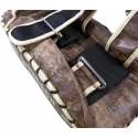 Zapínání: dva trvale všité elastické pásky: 7,5 cm široké a dva pásky na suchý zip: 5 cm široké provlečené kovovou sponou