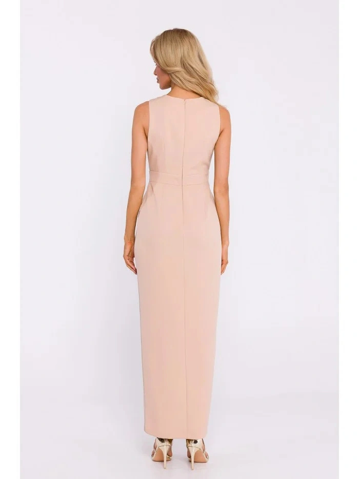 Maxi šaty ze smíšené látky M835 béžové - Moe S
