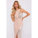 Maxi šaty na jedno rameno M718 šampaňské - MOE