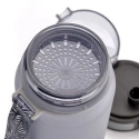 Láhev je průhledná s matným povrchem a protiskluzovou úpravou.