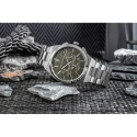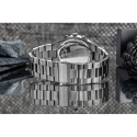 Robustní náramek z dokonale částečně kartáčované ušlechtilé oceli je prvkem, který nelze přehlédnout. Každý článek byl navržen tak, aby dokonale seděl na zápěstí a zároveň poskytoval maximální pohodlí. Přehnaný, dokonalý na dotek, rafinovaný a pevný - je jako ocelová obruč, která hodinky pevně drží na zápěstí a připomíná jejich stabilitu. Každý článek je pečlivě propracovaný do detailu, takže se hodinky skvěle hodí jak pro každodenní, tak pro formální vzhled. Jemně zpracovaná spona dotváří tento silný, mužný charakter hodinek.