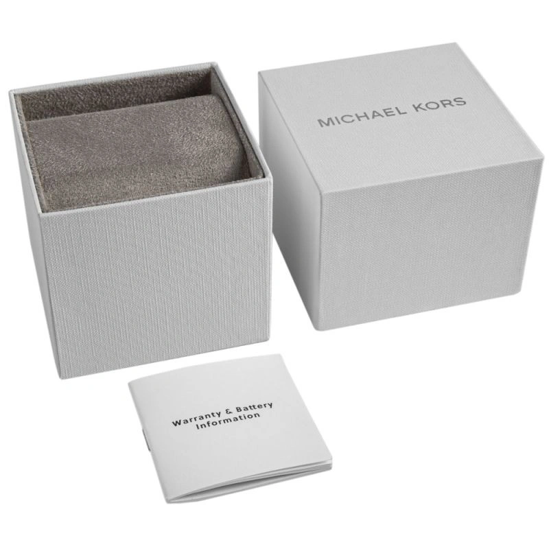 Stylová, originální krabička Michael Kors je předzvěstí toho, co vás čeká uvnitř. Minimalistické, ale přesto elegantní balení hodinek a pouzdra dokonale vystihuje ducha značky. Otevřete krabičku a uvnitř na vás čekají jedinečné hodinky s pouzdrem na karty. Tato sada je hotovým dárkem pro vás nebo pro někoho, kdo si opravdu zaslouží něco výjimečného.
