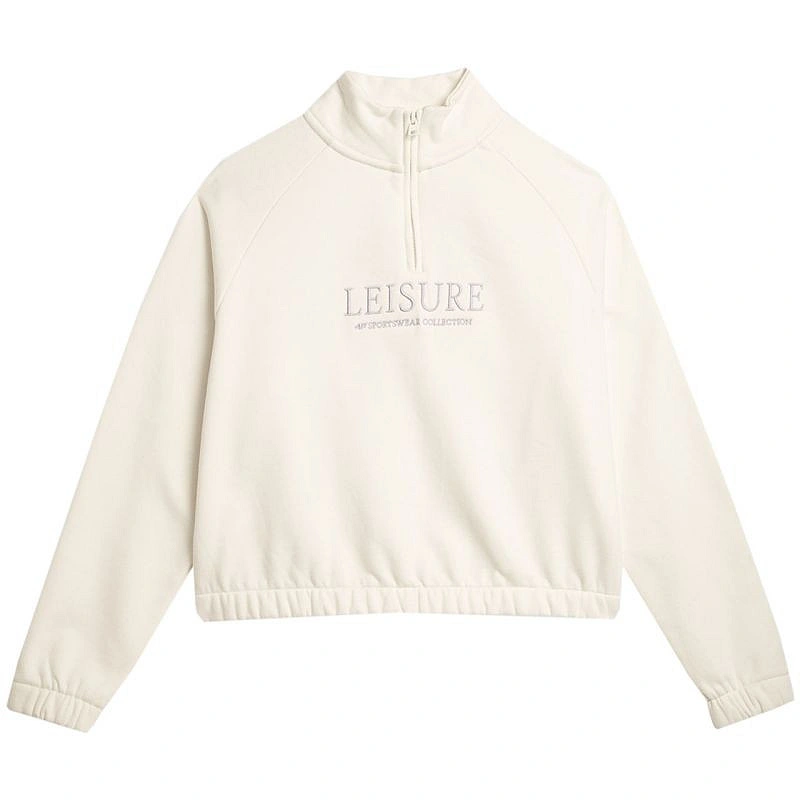 Dámská mikina 4F F0718 krémová 4FAW23TSWSF0718 12S Tato dámská mikina se bude dobře hodit na každodenní nošení. Izolované. Zavádí se přes hlavu. Bez kapuce. Stojatý límec s krátkým zipem. Na přední straně je vyšito "Leisure 4F Sportswear Collection". Raglánové rukávy zajišťují volnost pohybu. Spodní část a manžety zakončené gumičkami. Měkká tkanina s vysokým obsahem bavlny pro každodenní pohodlí.hlavní materiál: 78 % bavlna, 12 % polyesterPodšívka: 100 % bavlna