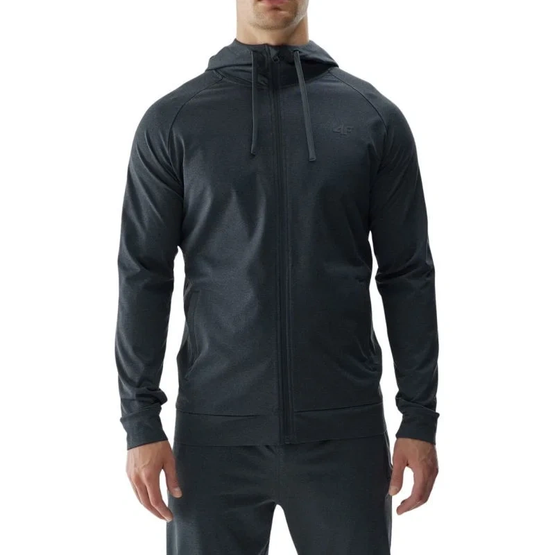 Bluza męska 4F M403 antracyt melanż 4FWAW24TFSWM403 22M Męska bluza 4F najlepiej sprawdzi się podczas treningów. Gramatura: 260 gsm· Jednostronnie czesane wnętrze zapewnia dodatkowe ciepło· Krój: regular, który wygodnie dopasowuje się do sylwetki· Standardowy fason sięgający do bioder· Wykonana z materiału syntetycznego, który zapewnia trwałość i jest łatwy w pielęgnacji· Rozciągliwy materiał dzięki dodatkowi elastanu (11%)· Jednolita kolorystyka pasująca do wielu stylizacji· Miękka w dotyku dzianina single jersey o gładkiej powierzchni· Dekolt ze zintegrowanym, regulowanym kapturem· Stójka pod szyją· Mankiety z dzianiny zasadniczej· 2 otwarte kieszenie boczne· Zapinana na jednokierunkowy zamek· Raglanowe rękawy nie krępują ruchów· Szybkoschnące włókna w technologii 4FDry odprowadzają wilgoć