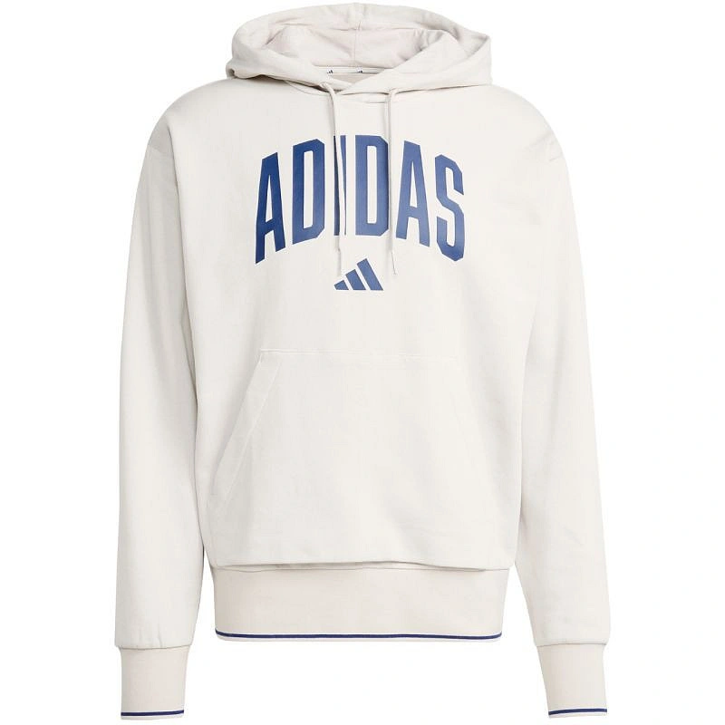 Měkká konstrukce z bavlněné tkaniny a přidaných polyesterových vláken. Standardní střih. Žebrované manžety a spodní lem zabraňující úniku tepla. Nastavitelná kapuce. Přední kapsa. Materiál: 60% bavlna, 40% recyklovaný polyester.