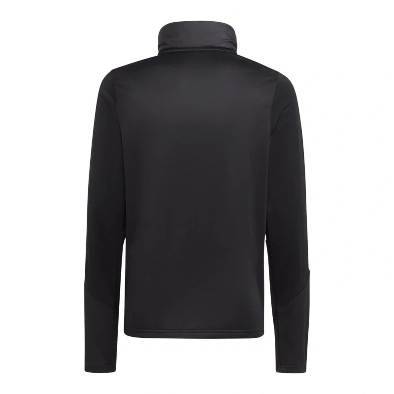 - Bílé pruhy v horní části rukávů a decentní logo podtrhují klasický fotbalový styl mikiny adidas.
