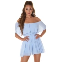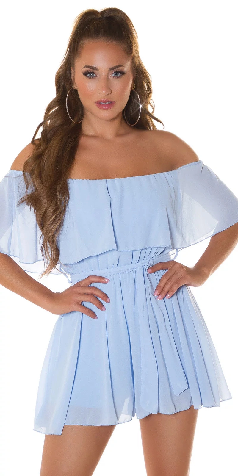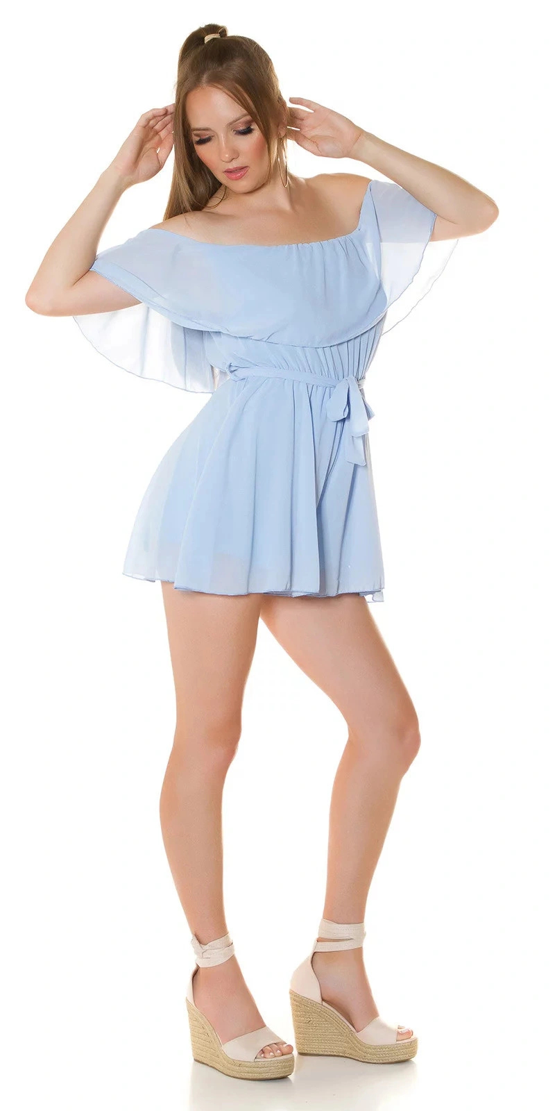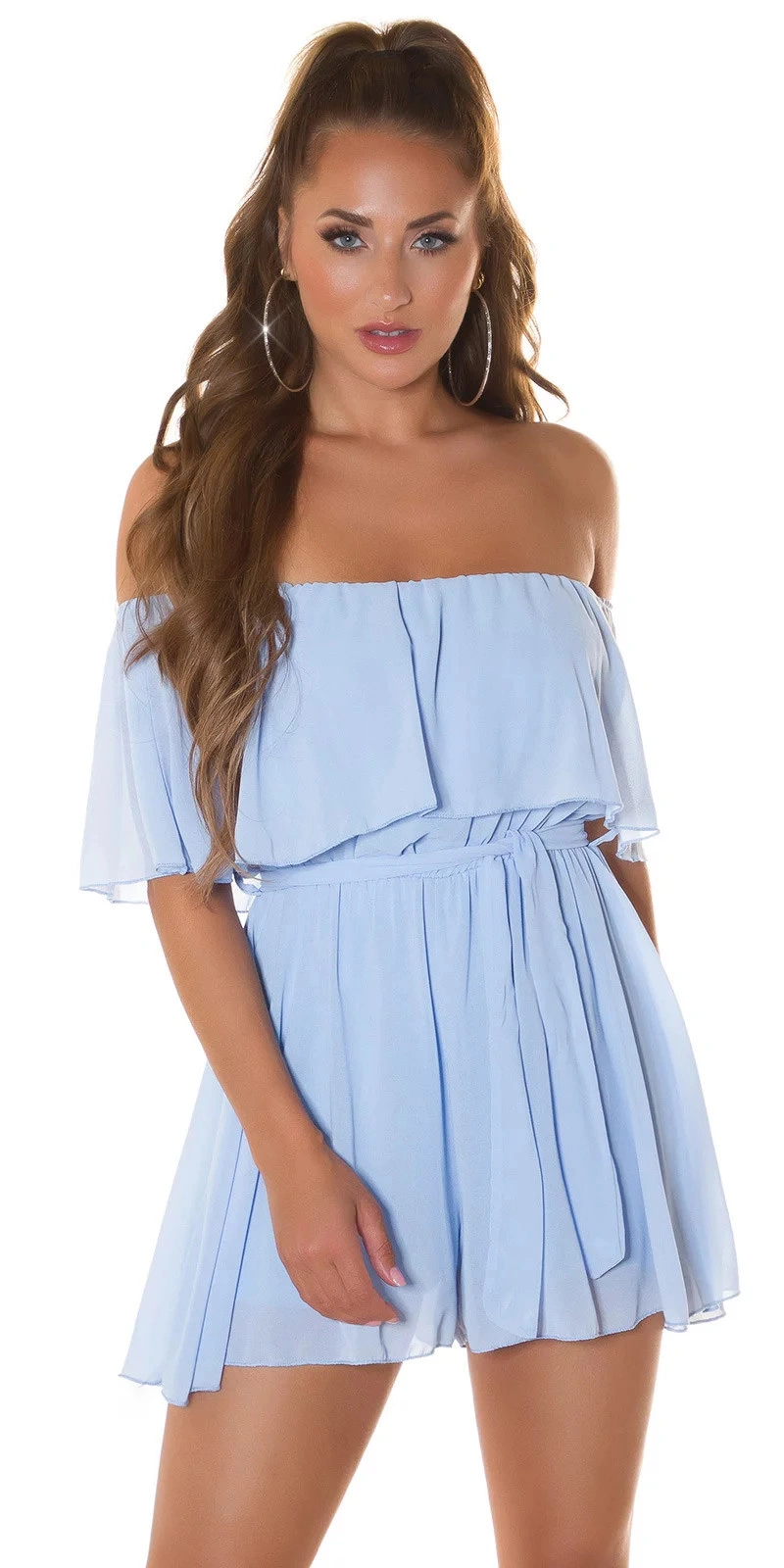 Dámský krátký overal z průhledné tylové látky, podšitý viskózou. V pase na zavazování.