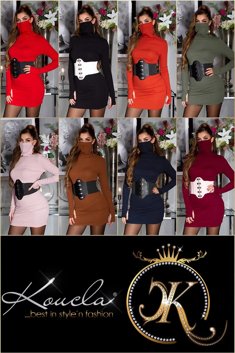 Dámské přiléhavé minišaty s vysokým rolákem - maskou. Materiálové složení: 95%Bavlna, 5% Elastan