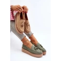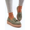 Klasické dámské mokasíny na platformě. Ozdobné střapce na přední straně jim dodávají jedinečný styl. Zaoblená špička, mírně vyztužená pata. Tyto mokasíny, které se skvěle hodí jak pro ležérní, tak pro sofistikovanější vzhled, budou skvělým doplňkem vašeho šatníku!