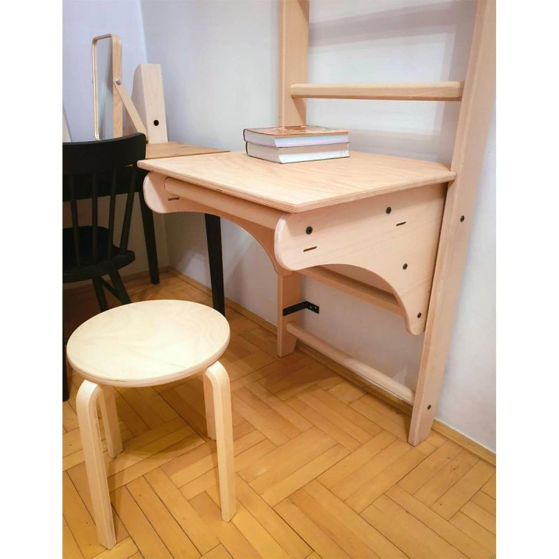 Odnímatelný překryt stolu z žebříku řady BenchK 110. Překrytí výsuvné tyče vyrobené z bukového dřeva vytvoří stylový a funkční stůl pro dítě nebo dospělého. Překrytí je ručně naolejované olejem nejvyšší kvality. Překrytí lze snadno vyjmout a uložit na vrchol žebříku, na tyč, aby se ušetřilo místo.