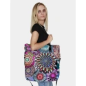 Dámská luxusní taška s koženými úchyty. Zavírání na zip.
