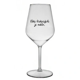 Nerozbitná čirá vinná sklenice s motivem NÁS KRÁSNÝCH JE MÁLO. je skvělá na zahradu, pláž, výlet, piknik a parádu udělá i při kempování. Jelikož je vyrobená z kvalitního polykarbonátu je de facto nerozbitná. Je to luxusní kousek, s nímž si víno můžete vychutnat prostě kdekoliv. Mají ergonomický tvar, který příjemně padne do ruky a protože je lehká, usnadňuje to její přenášení. Je snadno skladovatelná a lehce se čistí. Díky svému designu si s ní můžete vychutnat doopravdy kdekoliv bezproblémové pití výborného vína.