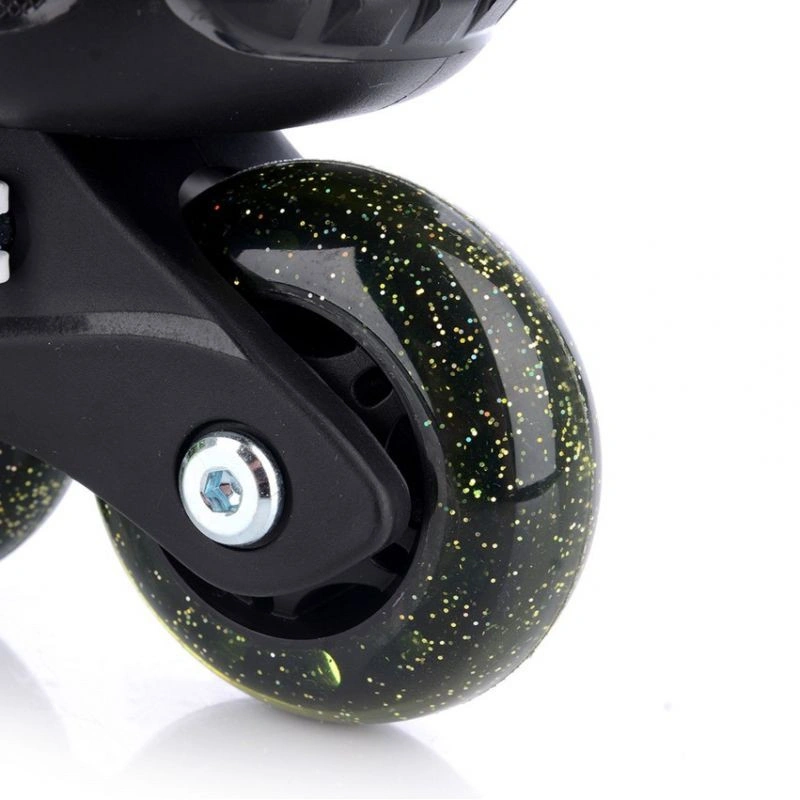 Rolkowrotki regulowane FunActiv Twixer Odkryj idealny pierwszy wybór dla dzieci uczących się jeździć na rolkach! Ten przyjazny dla początkujących model zapewnia maksymalną stabilność i bezpieczeństwo podczas stawiania pierwszych kroków na kółkach, umożliwiając płynne przejście do klasycznych rolek. Główne cechy: Unikalna konfiguracja kółek: Dwa duże, ustawione równolegle tylne kółka zapewniają doskonałą równowagę i stabilność, co jest idealne dla początkujących. Stabilność i komfort: Solidny i wygodny but gwarantuje przyjemne i bezpieczne pierwsze doświadczenia z jazdą. Regulowane przednie kółka: Możliwość zablokowania lub ograniczenia ruchu przednich kółek, aby pomóc dziecku w utrzymaniu równowagi i budowaniu pewności siebie podczas pierwszych jazd. Błyszczące kółka z PU: Nie tylko świetnie wyglądają, ale też zapewniają płynną, cichą i komfortową jazdę. Diody LED w tylnych kółkach: Kolorowe światełka aktywują się podczas jazdy, zapewniaj