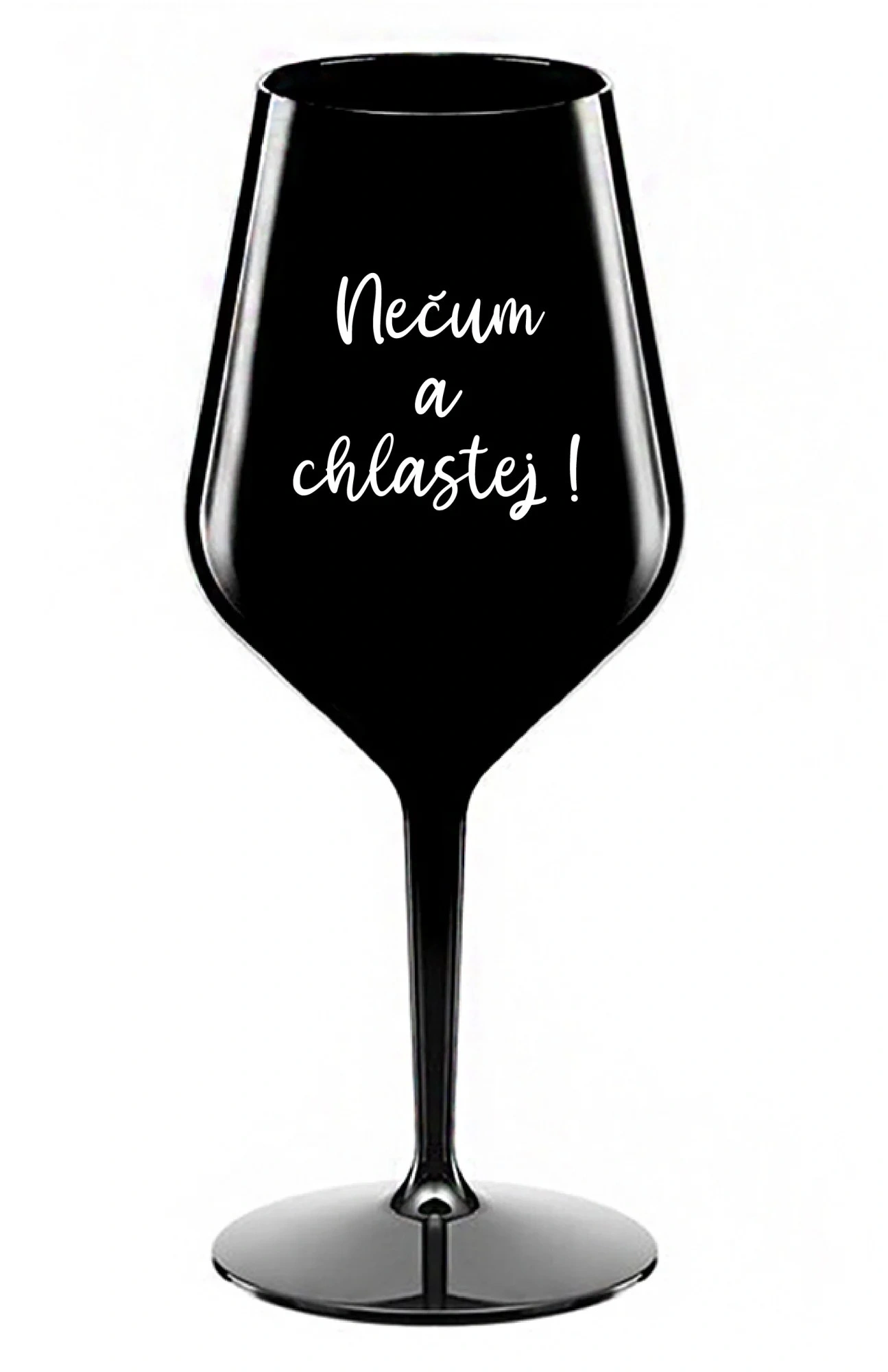 Nerozbitná černá vinná sklenice s motivem NEČUM A CHLASTEJ! je skvělá na zahradu, pláž, výlet, piknik a parádu udělá i při kempování. Jelikož je vyrobená z kvalitního polykarbonátu je de facto nerozbitná. Je to luxusní kousek, s nímž si víno můžete vychutnat prostě kdekoliv. Mají ergonomický tvar, který příjemně padne do ruky a protože je lehká, usnadňuje to její přenášení. Je snadno skladovatelná a lehce se čistí. Díky svému designu si s ní můžete vychutnat doopravdy kdekoliv bezproblémové pití výborného vína.