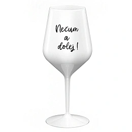 NEČUM A DOLEJ! - bílá nerozbitná sklenice na víno 470 ml