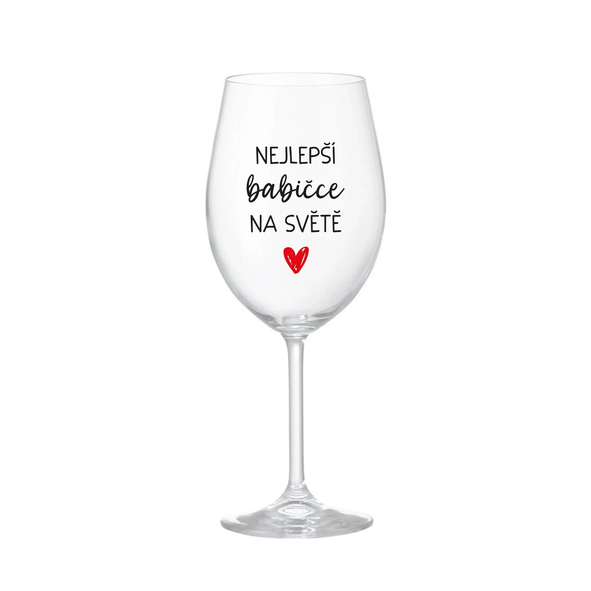 Vinná čirá sklenice s originálním motivem NEJLEPŠÍ BABIČKA NA SVĚTĚ je krásným a osobitým dárkem, které ale využijete i Vy sami třeba ve chvílích, kdy si budete chtít zpříjemnit náročný den. Tyto originální vinné sklenice jsou totiž nejen pro výjimečné události, ale i pro běžné večery, které si chcete zpříjemnit sklenkou dobrého vína. Jistě proto potěší každého milovníka vína, i toho, kdo si umí svůj život vychutnat plnými doušky. Materiál sklo. Vyrobené s láskou v ČR
