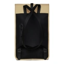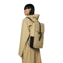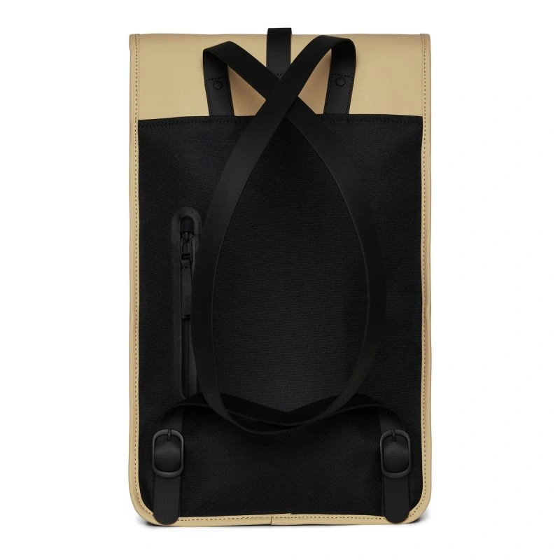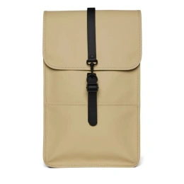 Batoh je vyroben z charakteristické voděodolné PU tkaniny Rains, navržené pro pevnost, odolnost a hladký omak.