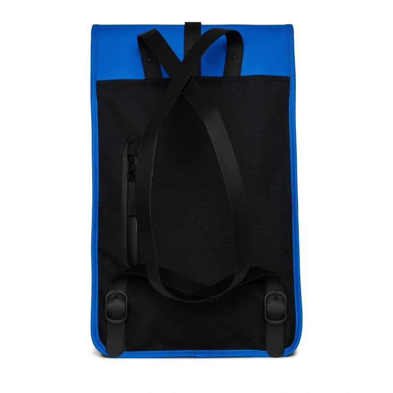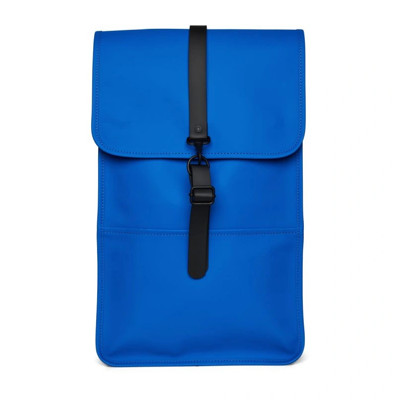 Batoh je vyroben z charakteristické voděodolné PU tkaniny Rains, navržené pro pevnost, odolnost a hladký omak.