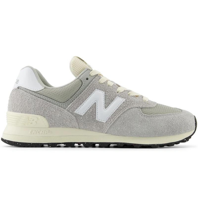 Klasyczne sneakersy z kultowej z serii 574.Cholewkę wykonano z wysokiej jakości skóry naturalnej, materiałów tekstylnych oraz syntetycznych.Język wykonano z miękkiej, obszytej po obu stronach pianki, którą wzmocniono łatką z logotypem marki.Podeszwę środkową wyposażono w technologię ENCAP, która składa się z połączenia trwałego i stabilnego brzegu wykonanego z poliuretanu z miękką, amortyzującą warstwą pianki EVA.Optymalną przyczepność do podłoża zapewnia gumowa podeszwa zewnętrzna z klasycznym bieżnikiem.Stylowe i wygodne unisexowe klasyczne sneakersy to świetna baza do codziennych, casualowych stylizacji.Obuwie idealnie uzupełni lekkie lub stylowe damskie koszulki i męskie t-shirty.