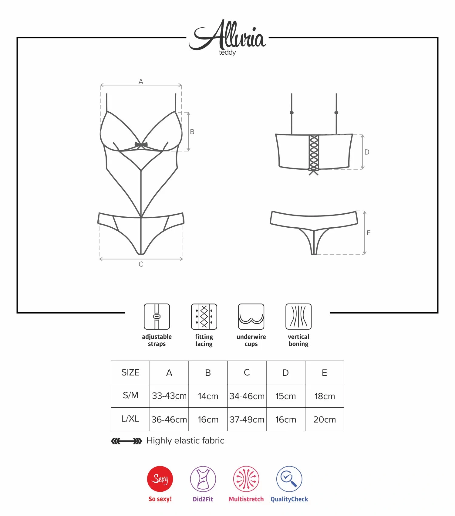 Něžné body Alluria teddy pink - Obsessive L/XL růžova