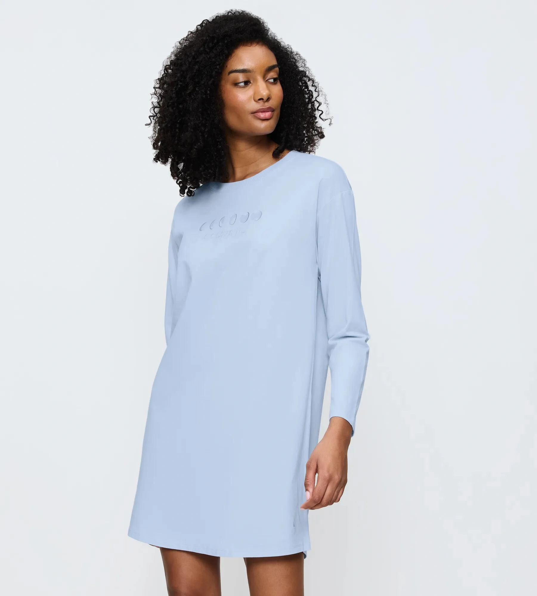 Naše jednoduchá, ale stylová noční košile má kulatý lem, aby lichotila vaší siluetě. Díky prodyšné tkanině a snížené linii ramen je mimořádně pohodlná na spaní.