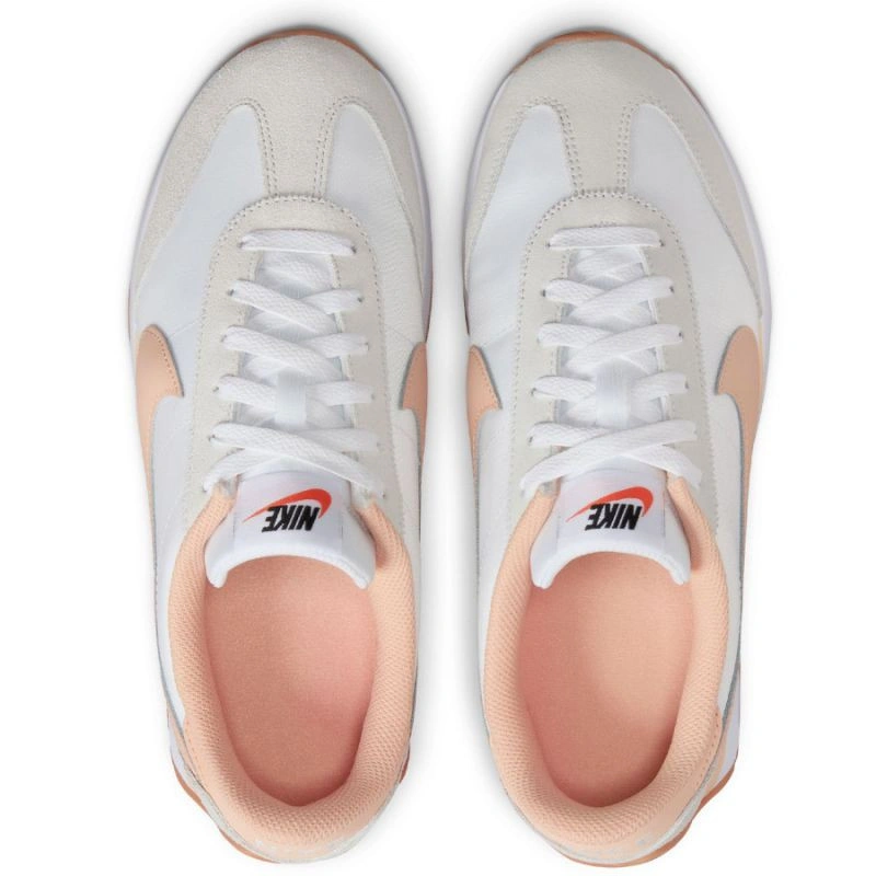 Svršek ze síťoviny a semiše zdobí vyražené logo Swoosh, zatímco podrážka ve tvaru žraločího zubu s pružnými drážkami dodává styl 70. let.