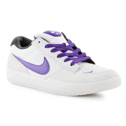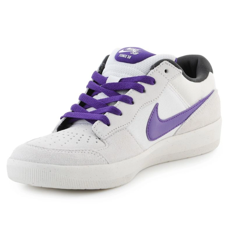 Nike SB Force 58 je inovativní skateboardová obuv, která kombinuje estetiku klasických tenisek s funkčností skate obuvi. Barevné provedení Phantom/Court Purple-Summit White má svršek z kůže/textilu/semiše, který zajišťuje odolnost a pohodlí při skateboardingu. Perforace inspirovaná Air Force 1 zlepšuje ventilaci, zatímco flexibilní konstrukce podrážky zajišťuje přirozený pohyb nohy a skvělý pocit z prkna. Gumová podrážka se zvýšenou trakcí zvyšuje kontrolu a stabilitu, takže je bota vhodná jak pro triky, tak pro každodenní nošení.