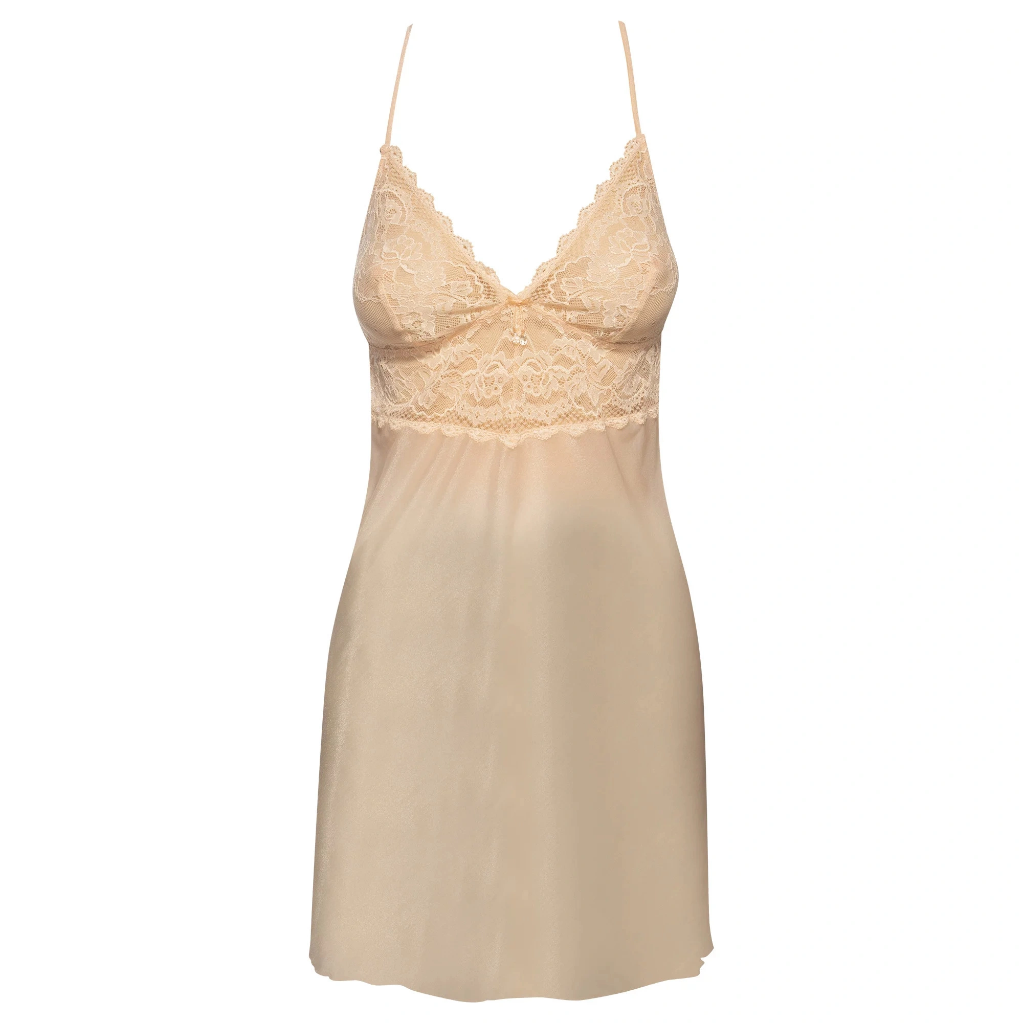 Zadní část košilky je také zdobena krajčím, což dodává celkovému designu jemnost a romantiku. Materiál složený z 85% polyamidu a 15% elastanu zaručuje pohodlí a příjemný pocit na pokožce po celou noc.