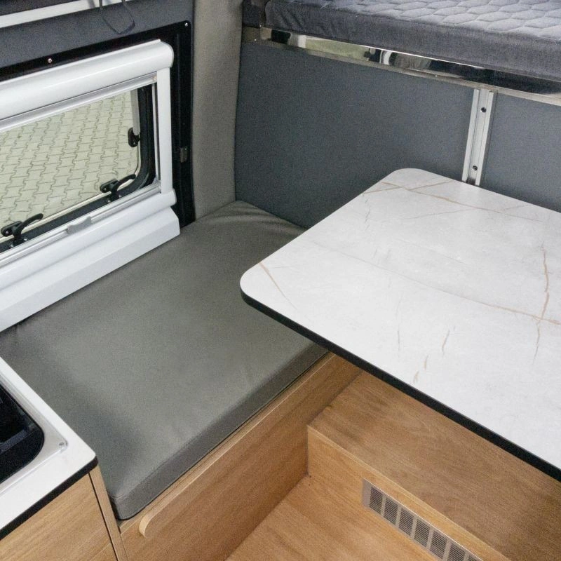 Atacama byla vytvořena pro ty, kteří chtějí cestovat nezávisle, spát daleko od civilizace a vařit si ve vlastní kuchyňce. V interiéru najdete plynový vařič, dřez s teplou a studenou vodou, vyhřívanou venkovní sprchu, naftové parkovací topení Webasto, nezávislé napájení ze solárního panelu a pohodlný prostor na spaní. Navíc máte k dispozici další úložný prostor v přední části kapsle, kam snadno uložíte nářadí nebo zásoby.