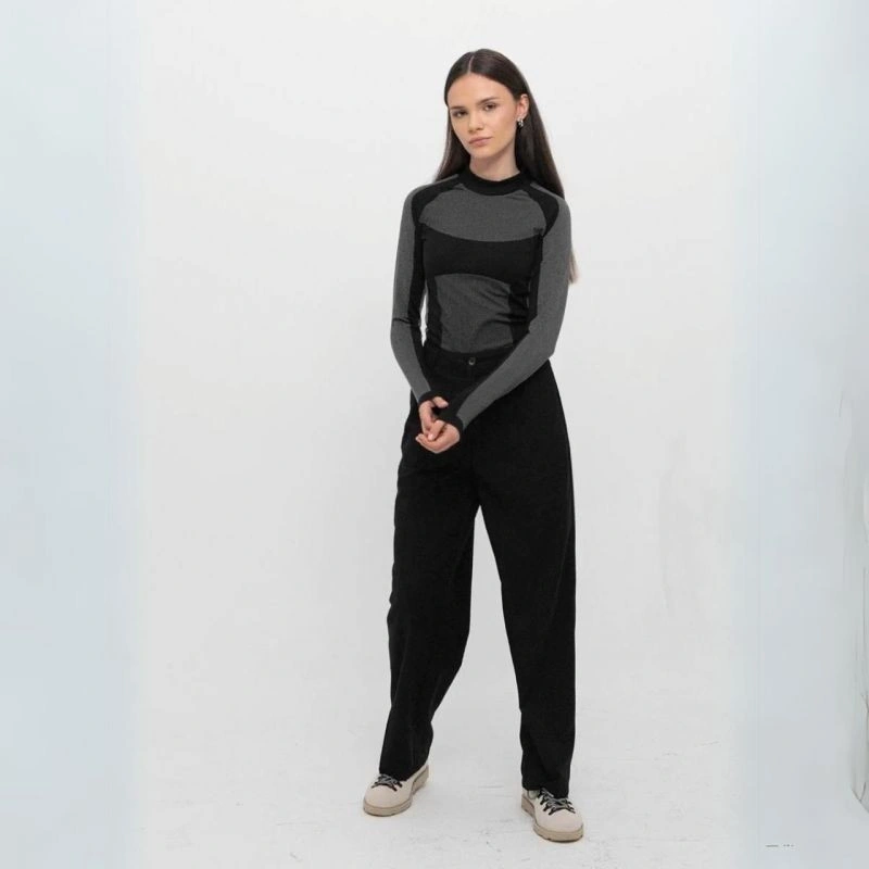 - Ploché švy minimalizují otlaky. Výstřih je zakončen žebrovaným stojáčkem, zatímco rukávy a spodní lem jsou lemovány gumou.