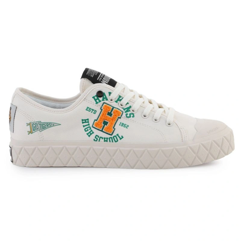 Model Palladium Ace Tigers inspirovaný Stranger Things kombinuje klasickou konstrukci plátěných tenisek s charakteristickým potiskem Tigers - dodává botě odvážný, módní vzhled s nádechem nostalgie a popkulturní symboliky. Plátěný svršek je prodyšný a odolný a dobře sedí na noze, zatímco měkká stélka zajišťuje pohodlí i při dlouhodobém nošení.