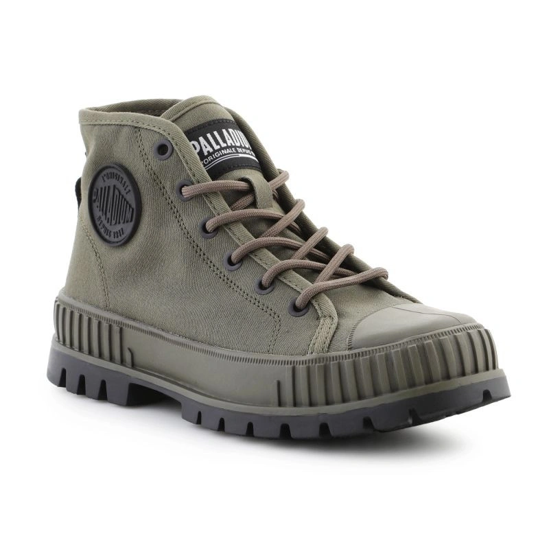 Palladium Pallashock Supply 77965-325 Olive Night je moderní verze ikonického modelu Pallashock, inspirovaná městskou estetikou a odkazy na styl "Supply". Svršek z organické bavlny poskytuje přirozený vzhled a lehkost, přičemž poskytuje správnou míru odolnosti, a podšívka ze stejné látky zajišťuje pohodlí.