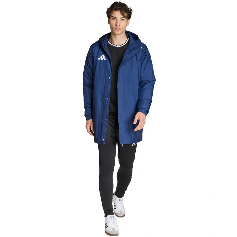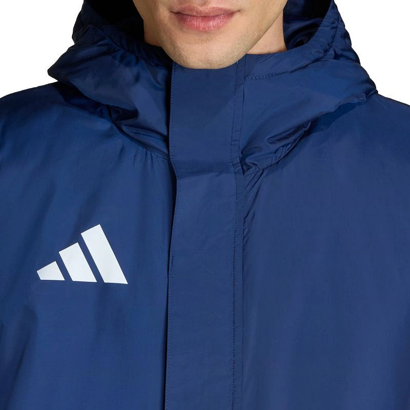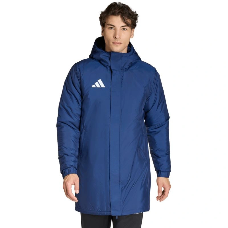 Pánská bunda adidas Entrada 26 Stadium tmavě modrá JZ6669 Pánská bunda adidas je určena pro odpočinek za postranní čárou. Neodepínací model regular fit. Neodepínací kapuce. boční kapsy na zip. manžety na rukávech s žebrovanými manžetami. klopa proti bouřce s druky. syntetická izolace. vnější materiál: 100% recyklovaný polyestervýplň: 100% recyklovaný polyester.
