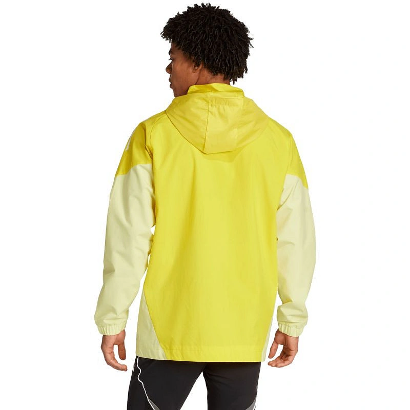 Pánská bunda adidas Tiro 25 Competition All-Weather Yellow JI8958 Pánská bunda adidas Tiro je ideální na trénink, má zip po celé délce pro rychlé oblékání, náplet chránící bradu a kapuci s nastavitelným stoperem, kterou lze zastrčit do límce. Technické specifikace:- vnější vrstva: 100% polyester (recyklovaný)- vnitřní vrstva: 100% termoplastický polyuretan- standardní střih- přední kapsy na zip- podšívka ze síťoviny- stahovací kapuce- elastické manžety.
