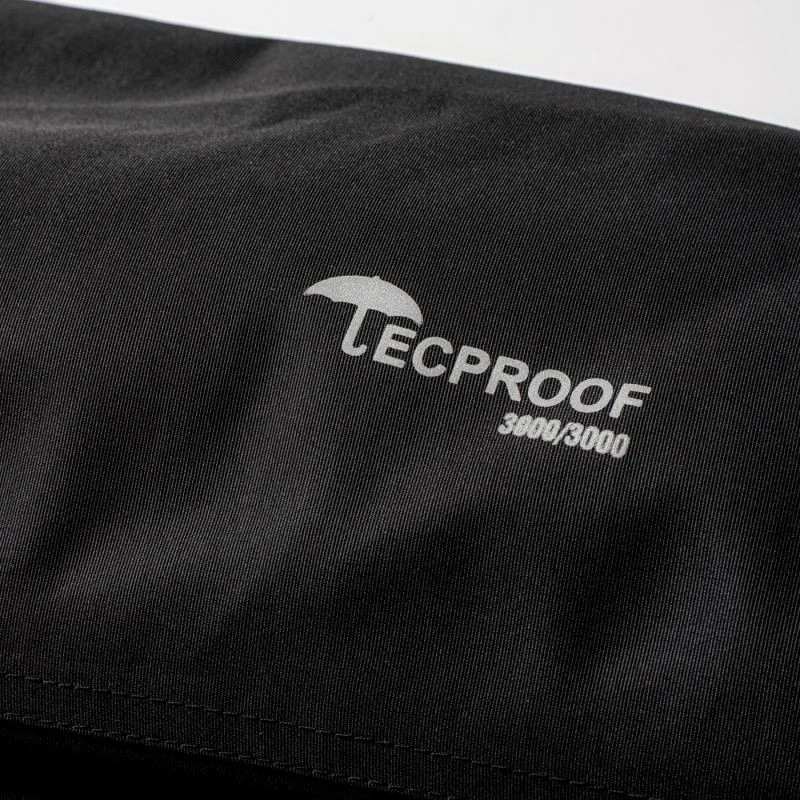 Vlastnosti: Vyrobeno ze 100% polyesteru Voděodolnost 10 000 mm H²O Prodyšnost 3 000 g/m² Dvouvrstvá