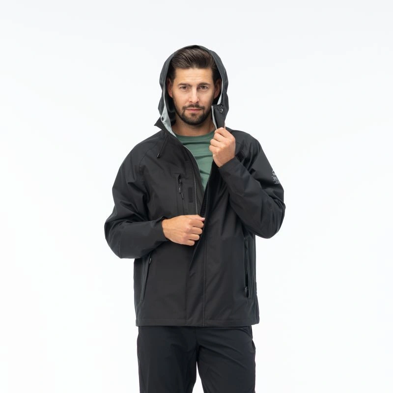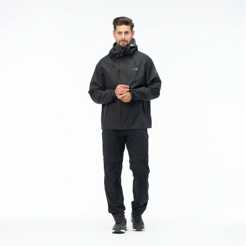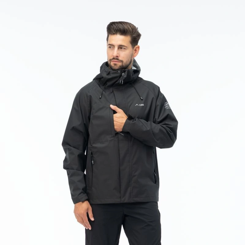 SLOŽENÍ MATERIÁLU: 100% POLYSTER SPECIFIKACE: - ODOLNOST PROTI VODĚ: 10 000 mm H₂O - Prodyšnost: 5000 g/m²/24h - TECHNOLOGIE ACTIVGUARD PLUS - ODOLNOST PROTI VĚTRU - 3VRSTVOVÁ LAMINACE - STAINED SEAMINATION - DWR COATING - YKK® ZIP - Nastavitelný OBAL - Reflexní prvky