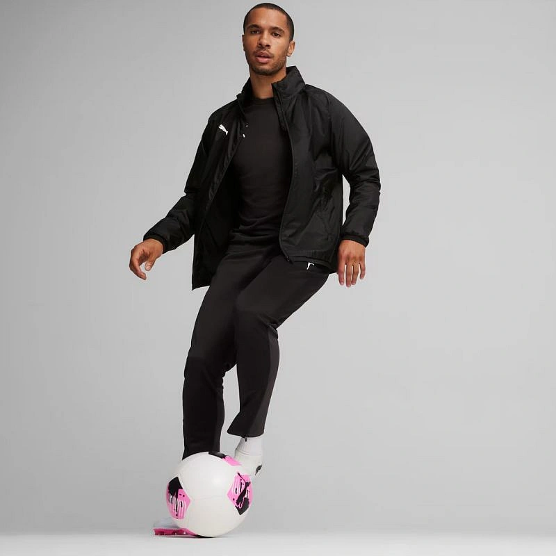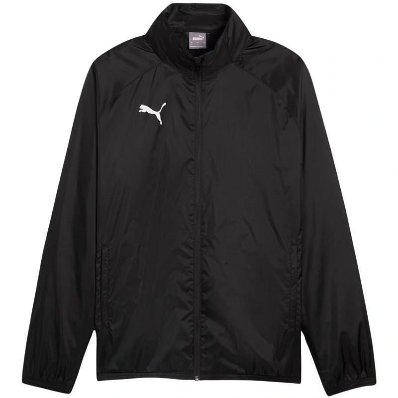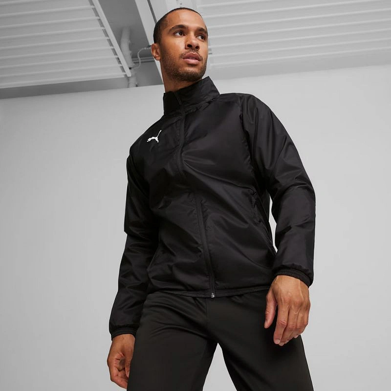 Pánská bunda Puma Team Goal All Weather Jacket black 659038 03. Bunda Puma TeamGOAL All Weather Jacket je nezbytným doplňkem vaší fotbalové výbavy. Odolná bunda pro trénink v dešti nebo za nepříznivého počasí. Pravidelný střih, reglanové rukávy pro větší volnost pohybu. Límec, který pojme odklopnou kapuci. Elastické manžety a spodní lem. 2 boční kapsy. Logo Puma na hrudi. Technické údaje:- Materiál: 100% recyklovaný nylon.
