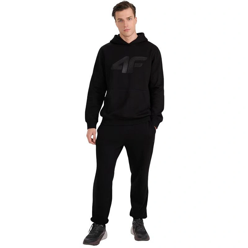 Bluza męska 4F M1766 głęboka czerń 4FWMM00TSWSM1766 20S Męska bluza 4F pozwoli na tworzenie wygodnych stylizacji idealnych na co dzień. Dane techniczne:· Materiał główny: 80% bawełna, 20% poliester· Materiał dodatkowy: 95% bawełna, 5% elastan· Jednostronnie czesane wnętrze zapewnia dodatkowe ciepło· Krój: regular, który wygodnie dopasowuje się do sylwetki· Standardowy fason sięgający do bioder· Wykonana w 80% z bawełny, dzięki czemu jest miękka, trwała i przyjemna w dotyku· Dodatek poliestru (20%) sprawia, że materiał jest wytrzymały i odporny na zużycie przez wiele sezonów· Jednolita kolorystyka pasująca do wielu stylizacji· Miękka w dotyku dzianina single jersey o gładkiej powierzchni· Dekolt ze zintegrowanym kapturem· Mankiety ze ściągaczem· Nadruk z przodu "4F"· Niezapinana kieszeń kangurka na przodzie· Wkładana przez głowę· Dół ze ściągaczem