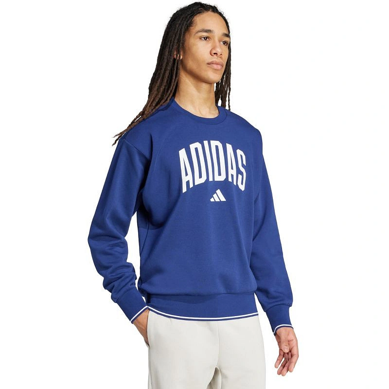 Pánská mikina adidas Collegiate Sweatshirt modrá JM1734 Pánská mikina adidas inspirovaná akademickým stylem je ideální pro každodenní nošení. měkká konstrukce z bavlněné tkaniny a přidaných polyesterových vláken. standardní střih. žebrované spodní části a manžety zabraňují úniku tepla. materiál: 70 % bavlna, 30 % recyklovaný polyester.