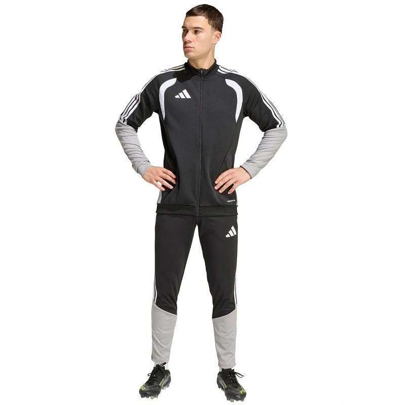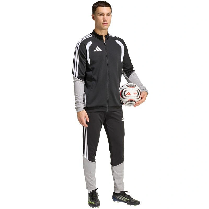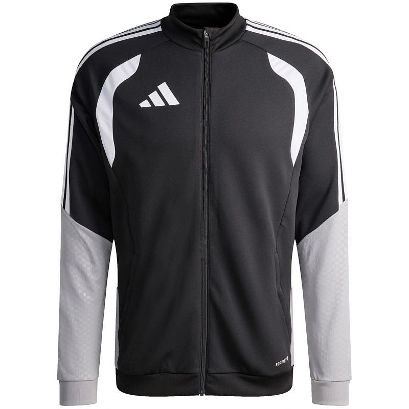 Pánská fotbalová mikina adidas Tiro 26 Competition Training černá, šedá a bílá JX4260 Tato pánská fotbalová mikina adidas je ideální na trénink. Stojatý límec. Dlouhý zip s ochrannou légou. Přiléhavý střih. Technologie Formotion pro větší pohyblivost. Vložky ze síťoviny na hrudi. Pruhy na ramenou. Jemné logo na hrudi. Reliéfní potisk na rukávech a bocích. Rychleschnoucí vlákna. Materiál: 100% recyklovaný polyester.