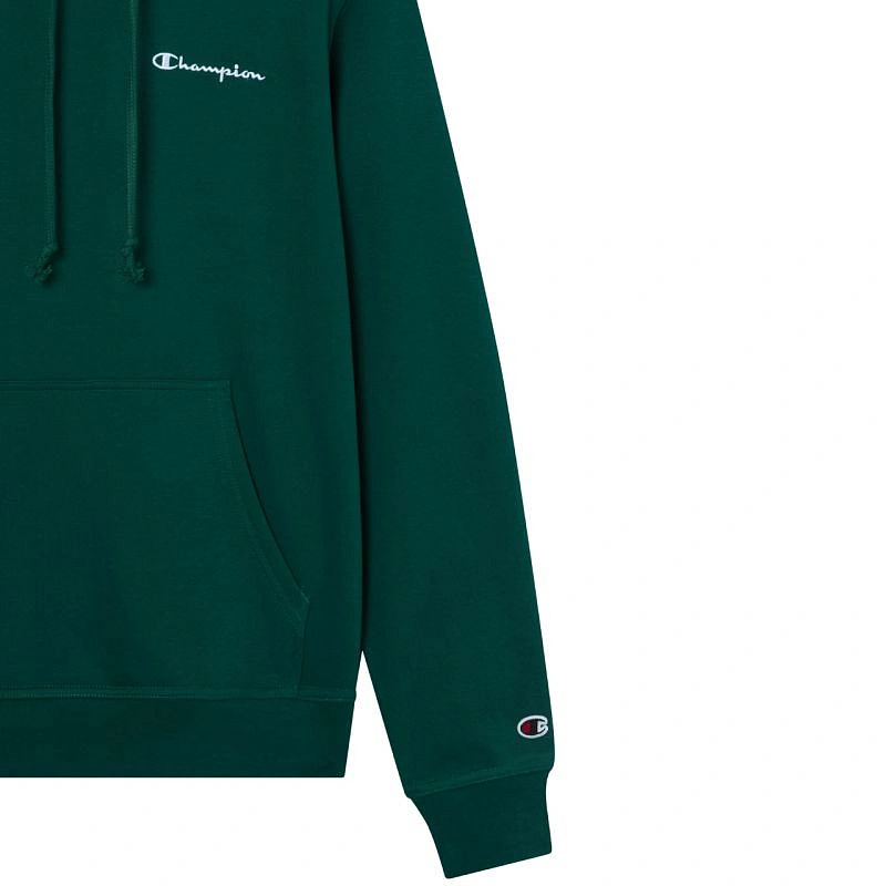 Pánská mikina Champion s kapucí zelená 221790 GS584 Tato pánská mikina Champion je ideální pro každodenní nošení. Standardní střih. Neodnímatelná, nastavitelná kapuce. Žebrované manžety a spodní lem. Přední kapsa. Loga na hrudi a rukávech. Zateplená vnitřní část. Materiál: 70 % bavlna, 30 % polyester.