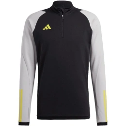 - Černé pruhy ve spodní části rukávů a decentní logo vynikají na šedém pozadí a podtrhují klasický fotbalový styl mikiny adidas.