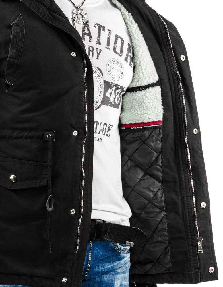 Pánská prošívaná zimní bunda s odnímatelnou kapucí černá - Černá / XXL - DSTREET