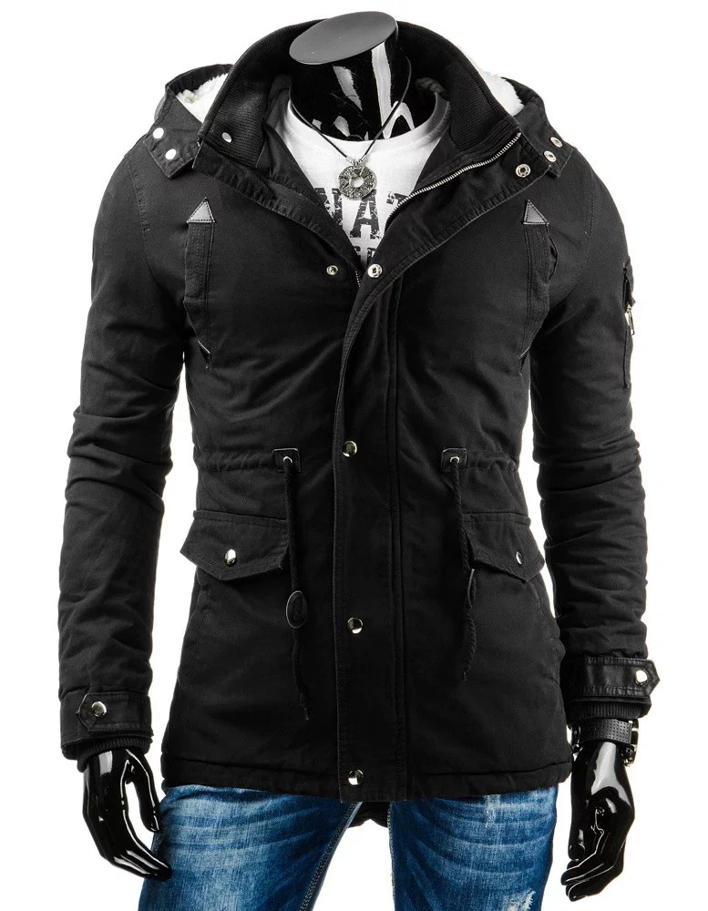 Pánská prošívaná zimní bunda s odnímatelnou kapucí. Pánská zimní bunda. S teplou podšívkou. Zip a p