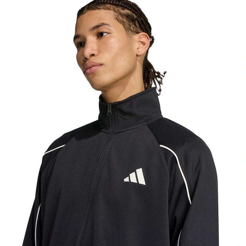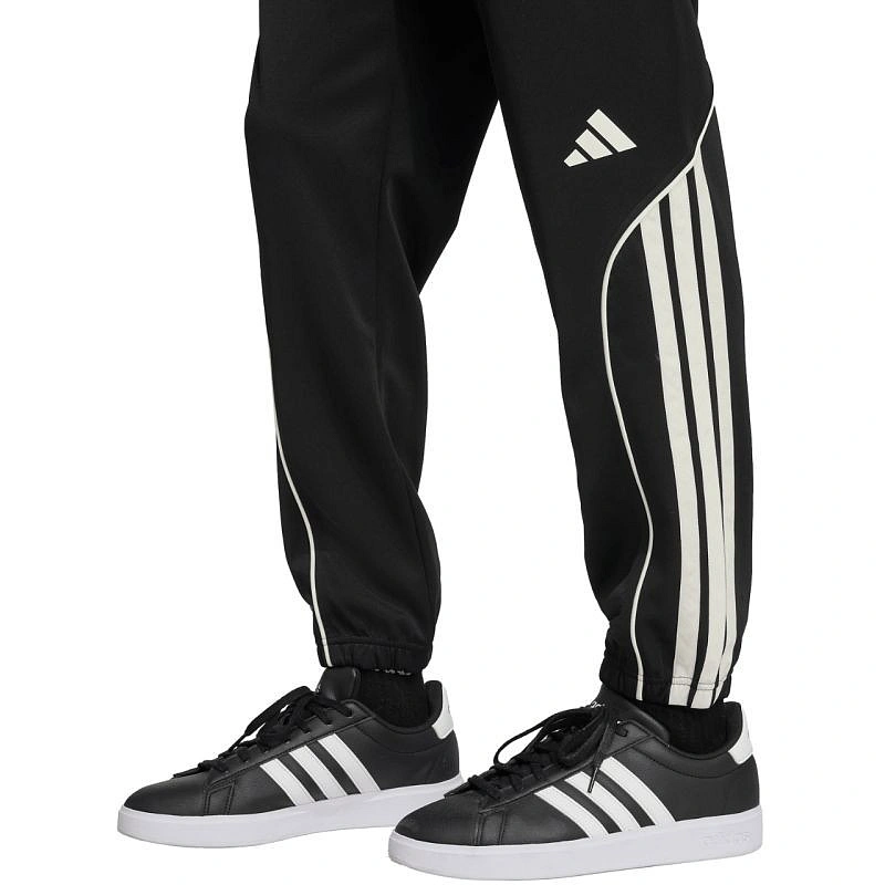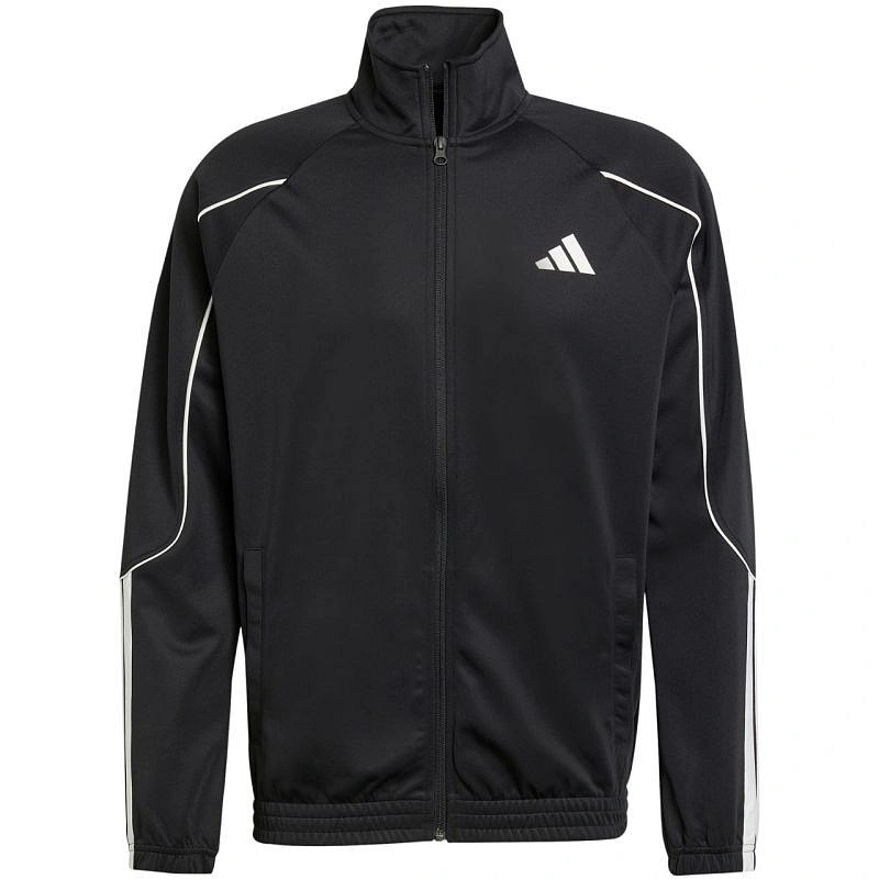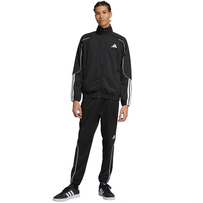 Pánská tepláková souprava adidas 3-Stripes Tracksuit Black JN1817 Pánská tepláková souprava adidas 3-Stripes Tracksuit je pánská tepláková souprava na fotbalový trénink nebo odpočinek mimo hřiště. Nevyztužená mikina má stojáček a je střižena ve standardním střihu s žebrovanými lemy. Tepláky mají elastický pas s nastavitelnou šňůrkou. Mikina má kapsy. Tepláková souprava je vyrobena z rychleschnoucího recyklovaného polyesteru. Materiál: 100% recyklovaný polyester.